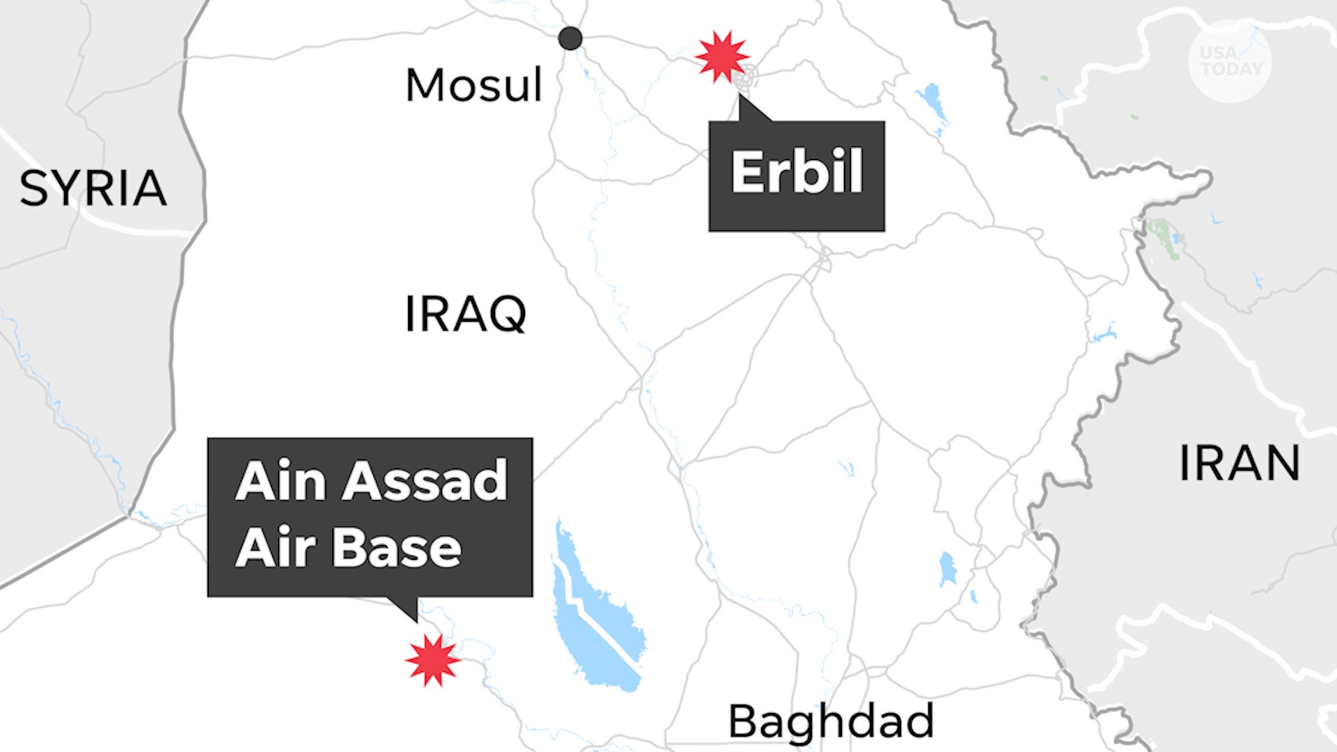 More than a dozen ballistic missiles were fired from Iran at the Al-Assad and Irbil air bases, according to a Pentagon spokesman.