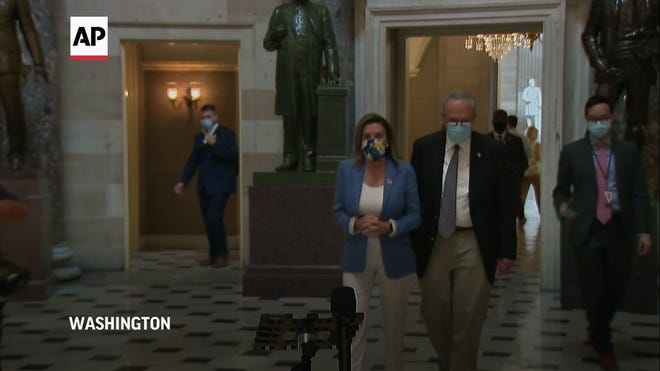 House Speaker Nancy Pelosi and Senate Minority Leader Chuck Schumer, Congress' top Democrats, met again Monday with White House Chief of Staff Mark Meadows and Treasury Secretary Steven Mnuchin for several hours, where they examined the competing proposals and went through specific dollar amounts in various areas in the two bills.