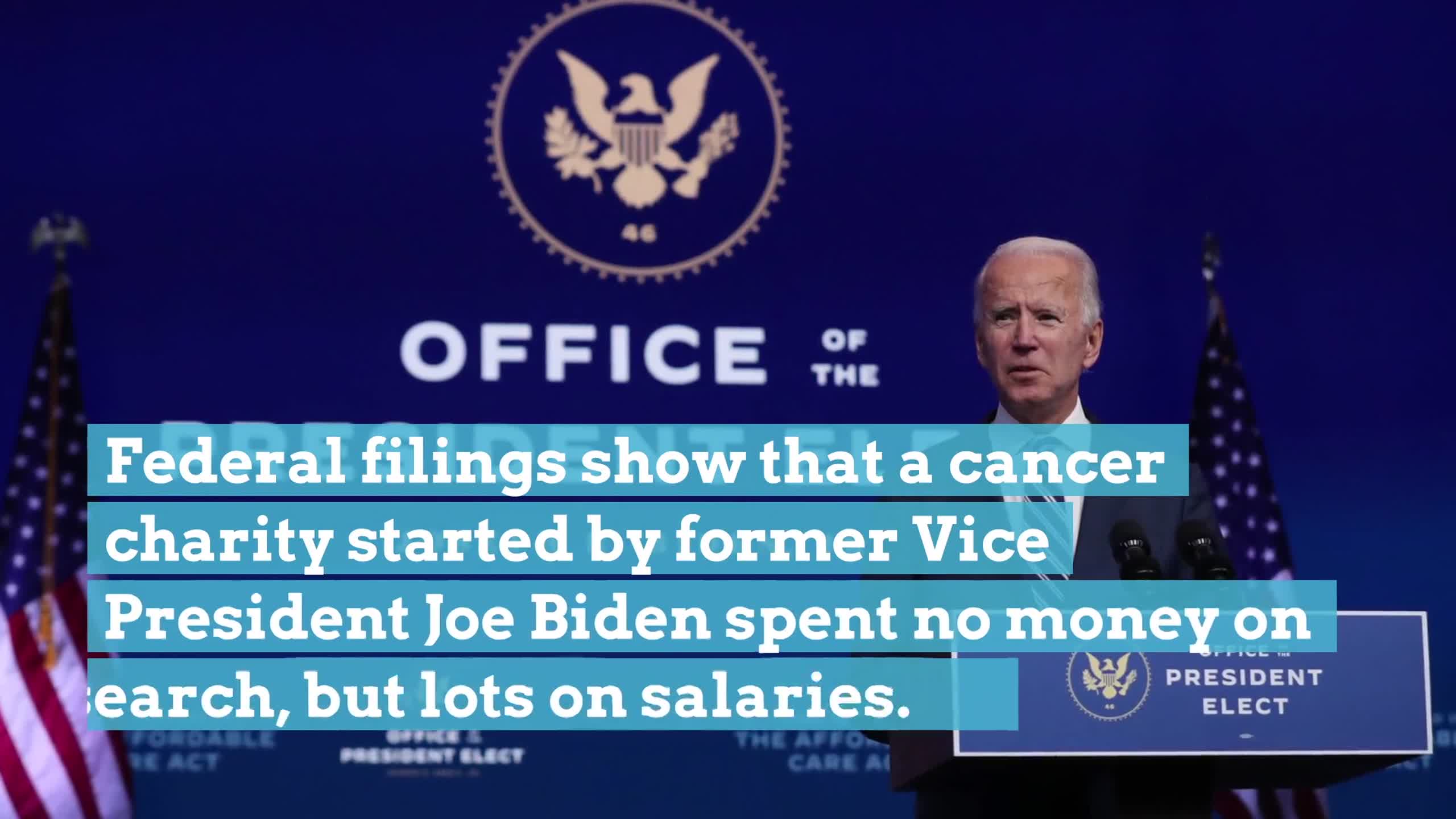 Federal filings show that a cancer charity started by former Vice President Joe Biden spent no money on research, but lots on salaries.