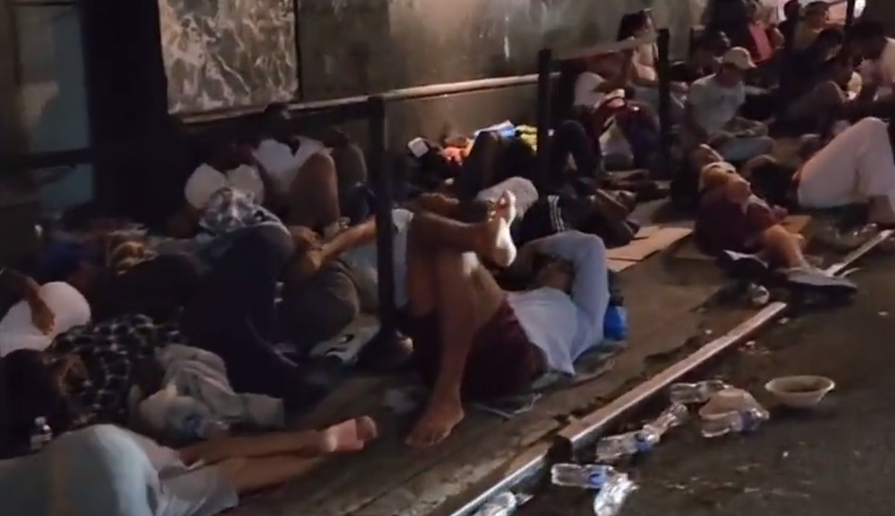With hotels at capacity, hundreds of migrants have been seen sleeping on city sidewalks, often on pieces of cardboard, littering the streets with trash and clothing in what look like extremely inhumane conditions.