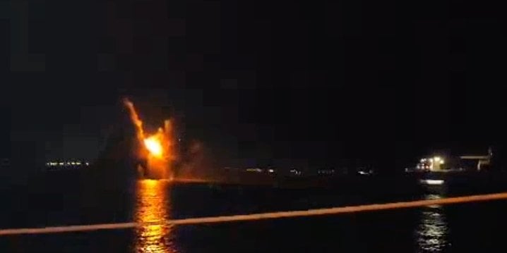 Dramatic video shows Russian Black Sea ship sinking after Ukraine drone attack