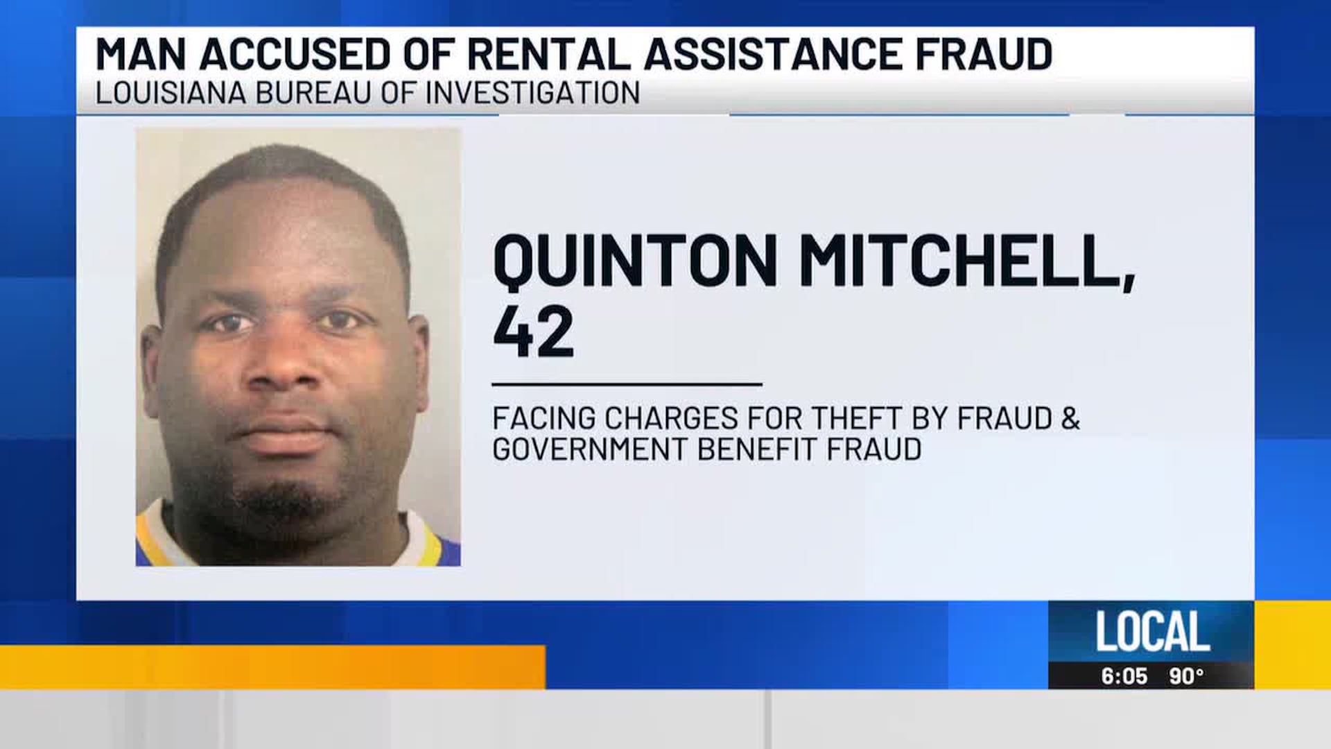 Jail records show Quinton Mitchell, 42, was arrested on Tuesday, Sept. 30, on the charges of theft by fraud over $25,000 and government benefit fraud.