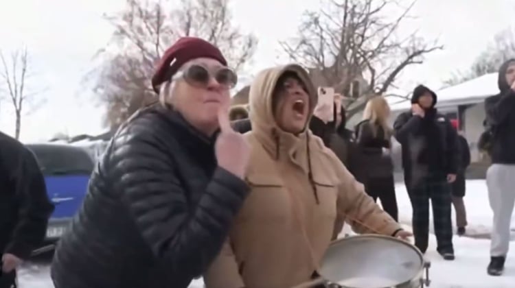 Mother Jones, early January 2026: “The women were seemingly attempting to interrupt immigration agents by taking up road space.”