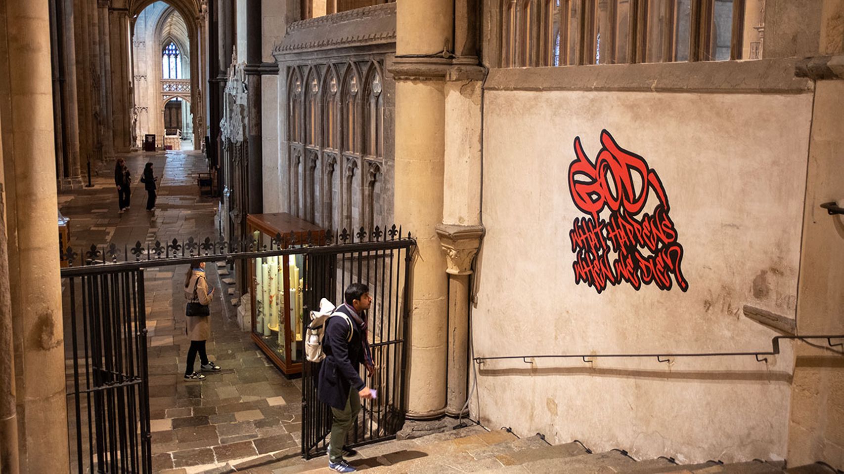 As if to prove this point, Canterbury Cathedral hosted an exhibition of graffiti art late last year, apparently to cultivate engagement with “marginalised communities.” Local groups were guided to ask questions of God that were, in turn, rendered into vibrant graffiti-style lettering and “expertly and sensitively affixed to the Cathedral’s stone pillars, walls and floors.” Pedants were quick to push back on critics, pointing out that the graffiti was just stickers. But why was graffiti of any kind, permanent or temporary, thought necessary in such a place? Do the leaders of the Church of England have so little confidence in the message of God, in the church’s magnificent architecture, or in the story of the murder of Thomas Becket to inspire visitors? Do they consider Britons so degraded that they can be won over only by the “relevance” or “edginess” of graffiti?